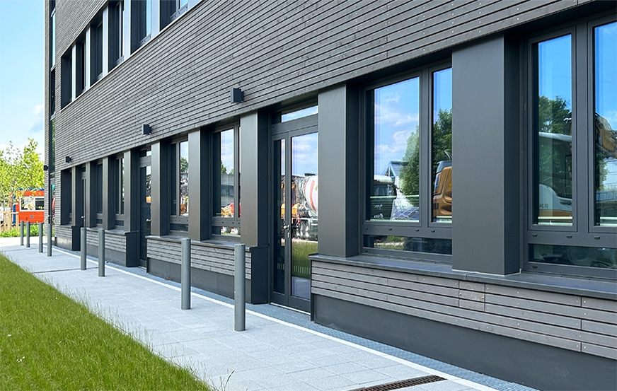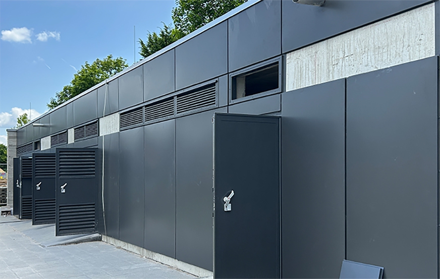 Ebenso wurde ein Nebengebäude in Stahlbetonbauweise errichtet, in welchem Traforäume, Nieder- und Mittelspannungsverteilungen sowie der Müllraum untergebracht sind.
