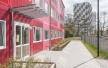 Die starke Farbgebung begründet sich im Standort: das Gebäude sollte sich behaupten können inmitten eines neu entstehenden Stadtteils mit reger Bautätigkeit.